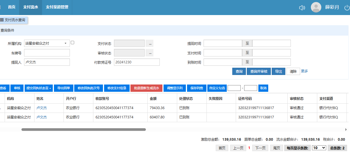 2024.12.30由【付款清单】匹配生成【支付流水】通过【BQ】渠道支付,收款人额度超限并且支付成功(见附件)