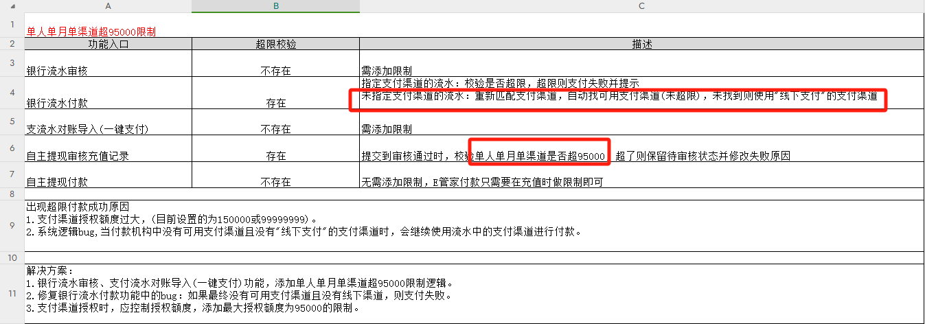 系统是否有单月单个渠道收款人不超过95000的限制,若有请说明为什么会出现支付成功的情况并出具一份失误报告,若没有也需出具一份。