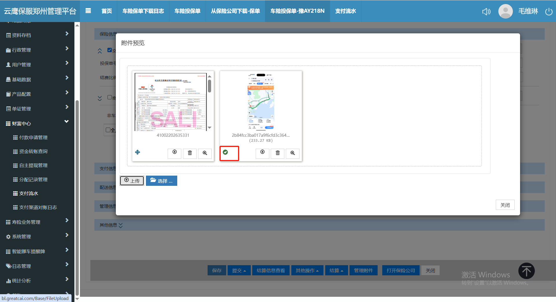 在投保单-附件管理上传图片文件,显示上传成功,但是关闭页面后再打开就没有了