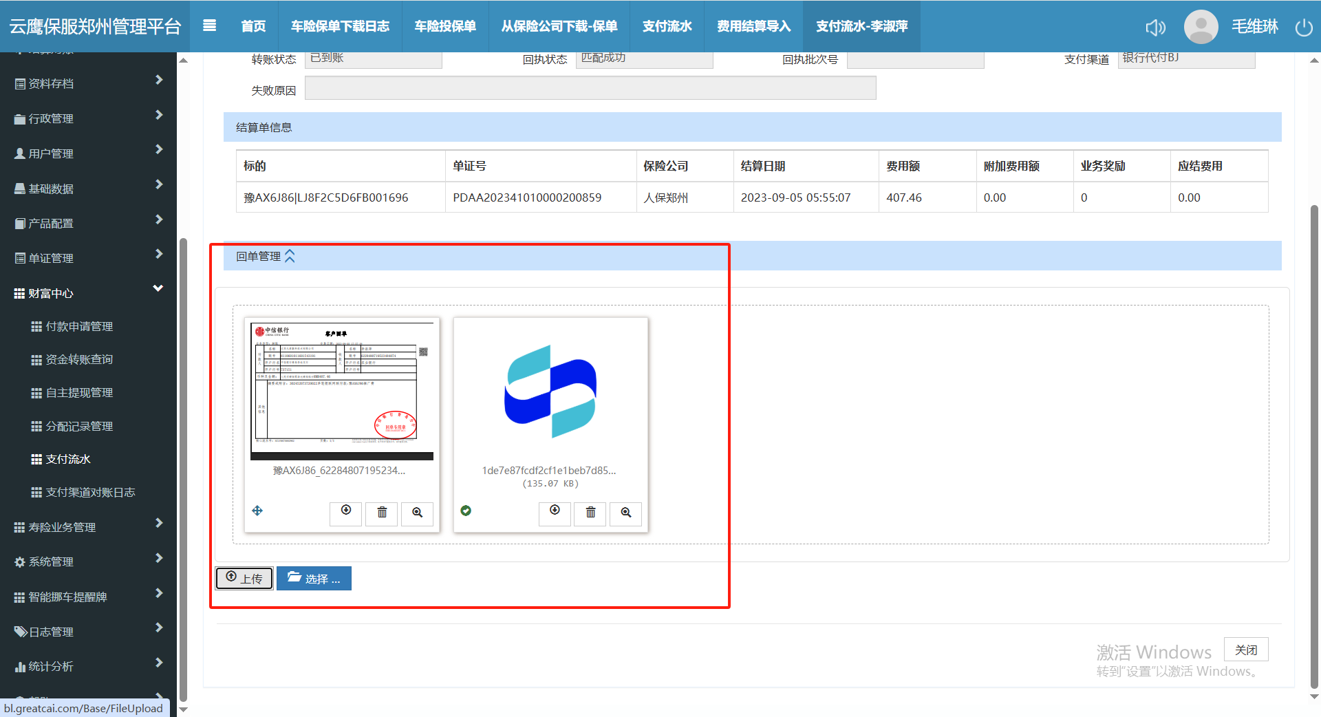再支付流水-回单管理中上传图片也是上传成功但是再打开页面时图片就没有了