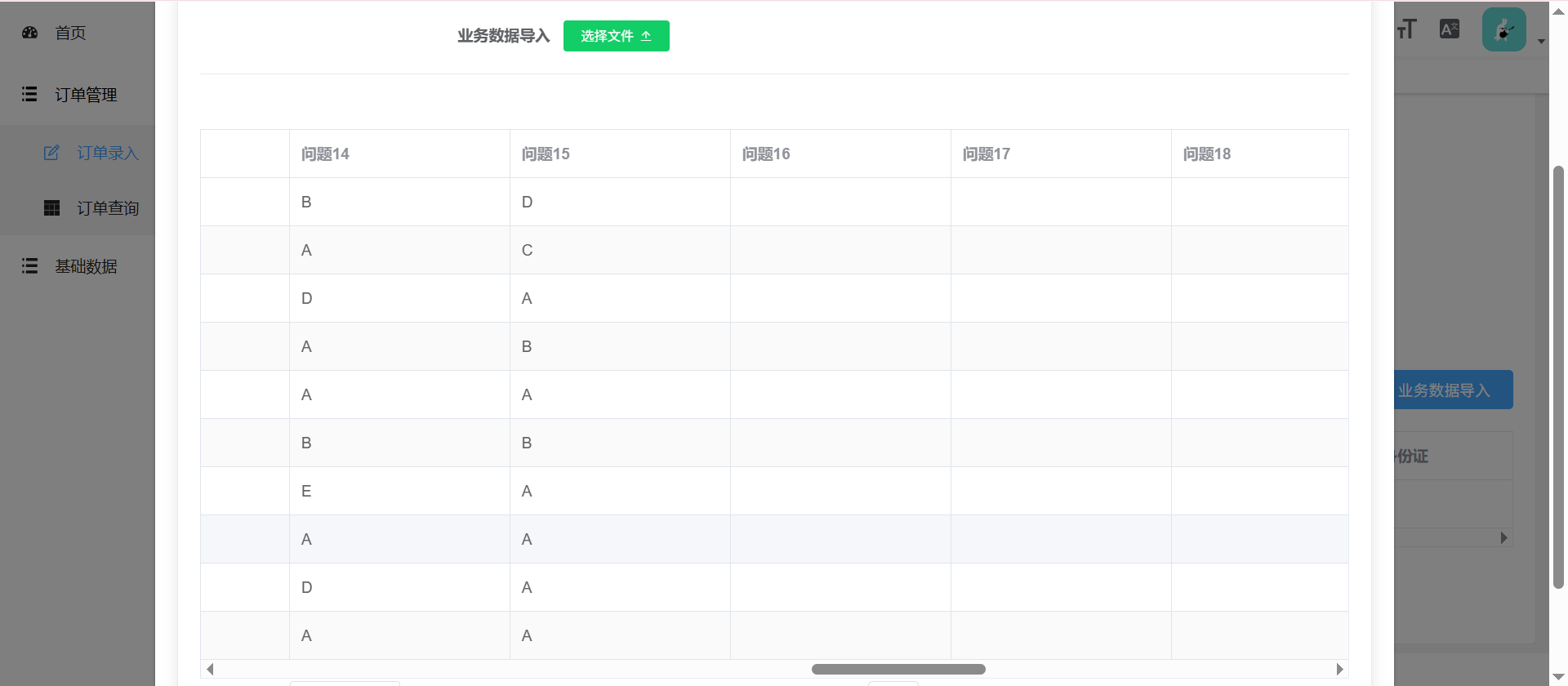 【订单管理与结算系统】在开票走市场调研-需求调研时,上传的数据导入明细显示不全,上传的附件在附件,有26个问题,导入以后关掉界面重新打开查看,就变成了显示15个问题(如图1)