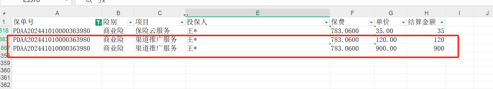 现在出现同一笔保单号,在渠道推广中,出现重复两次的情况,理论上来讲,一个保单,在一个结算清单中,最多出现两次,一次是保险云,一次是渠道推广。现在清单导出明细中,渠道推广中出现重复保单号。以保尔总荥阳-八方0815为例,里面的渠道推广数据就有重复的