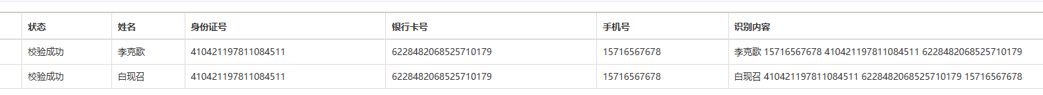 机构:八方平顶山 李克歌和白现召姓名不同,但身份证,卡号,手机号都相同,两个人的支付信息都可以校验成功,需查明哪一个是正确的支付信息,并完善校验逻辑问题。详情见附件图片