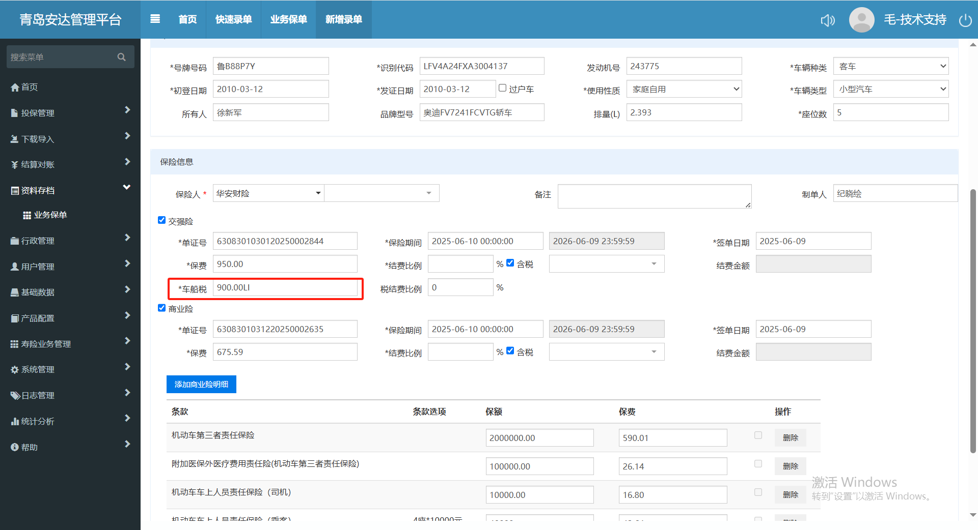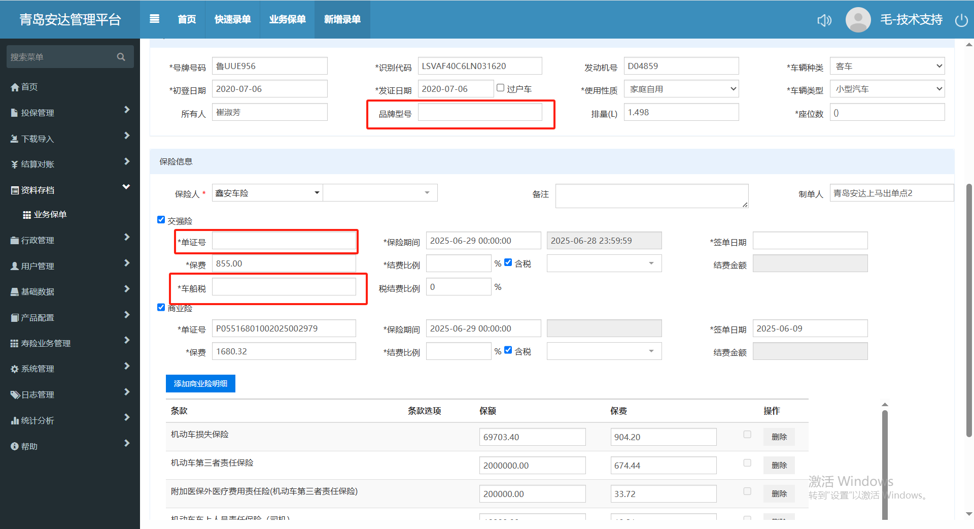 1、华安财险车船税识别过多2、英大财险车船税及商业条款未识别3、鑫安车险单证号、车船税、品牌型号未识别
