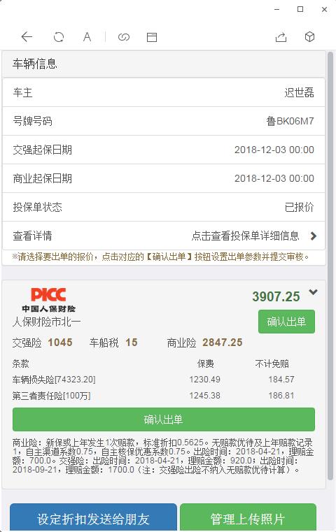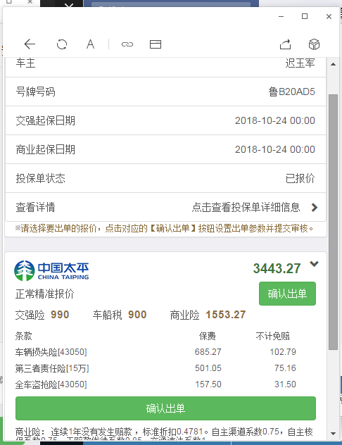 【安达】青岛安达太平报价,车船税不正确,微信报价车船税为900实际保险公司报价为1800