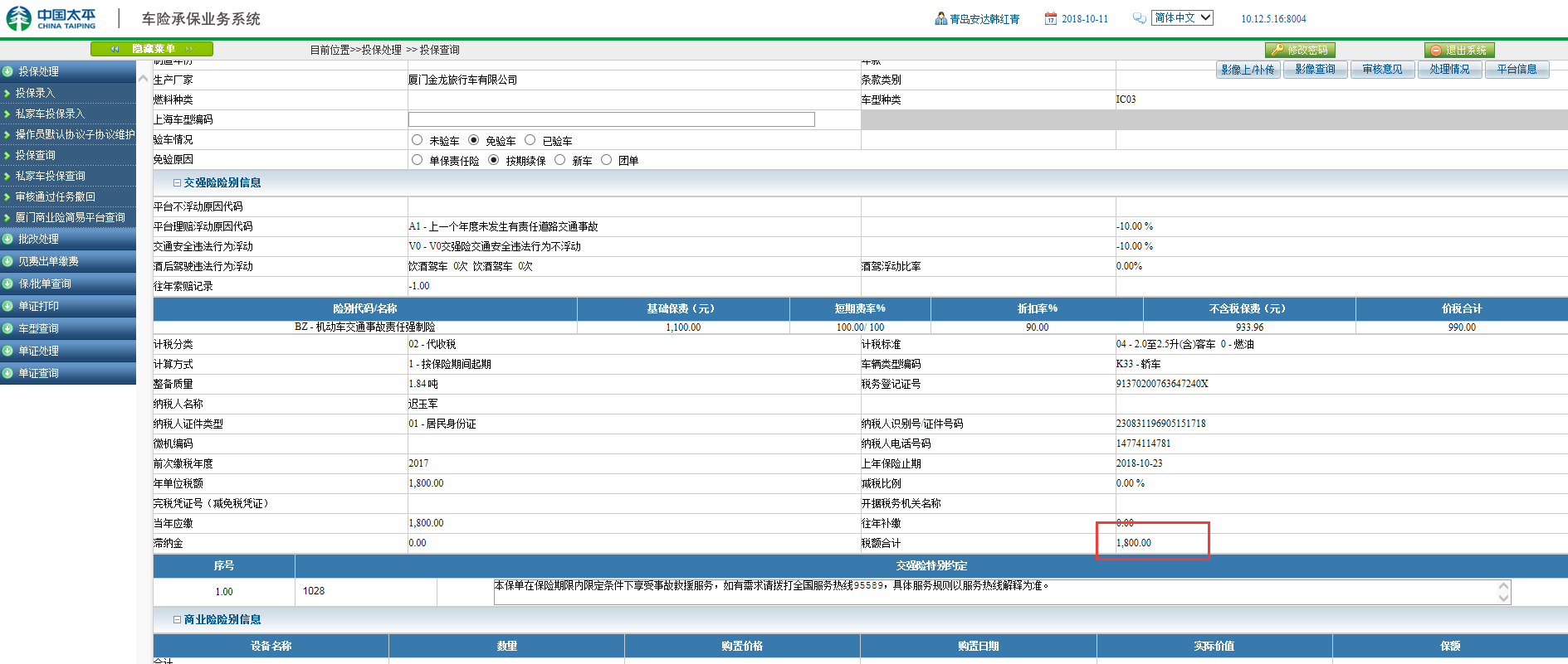 青岛安达太平报价,车船税不正确,微信报价车船税为900实际保险公司报价为1800。