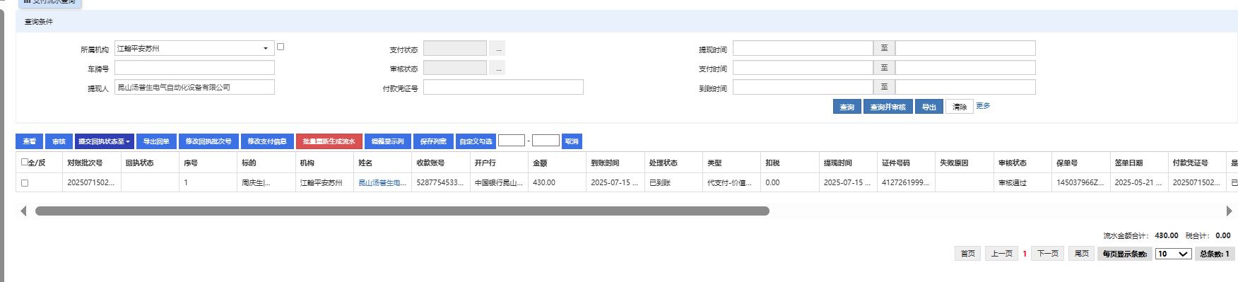 错误 #6653: “江翰平安苏州”机构退回部分机构至韩总青岛银行,需要修改银行流水金额,并且添加相关备注