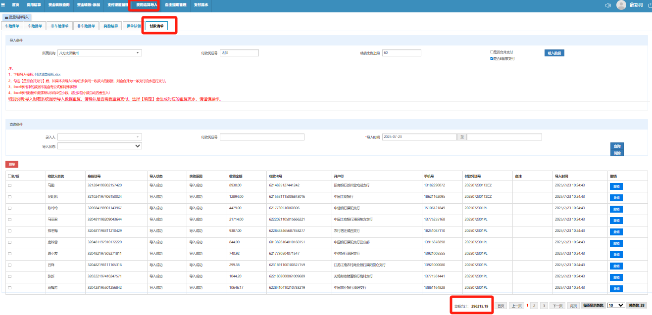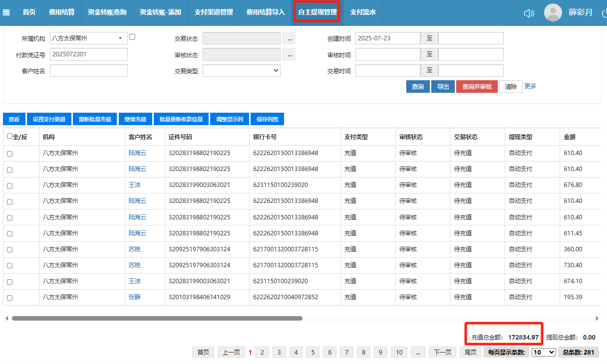【自主提现管理】生成的金额与【付款清单】导入金额不一致