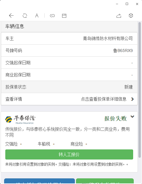 在海林公众号报价时提示“未将对象引用设置到对象的实例”