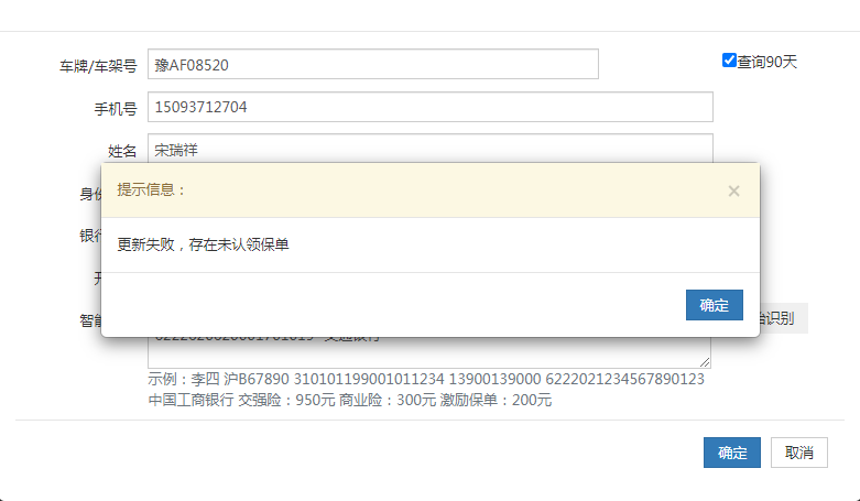 郑州老师使用保单认领功能进行认领商业险,提示:更新失败,存在未认领保单,经了解,交强和商业是分开出单,交强的信息先导入系统认领,商业后导入,现无法认领商业险生成流水