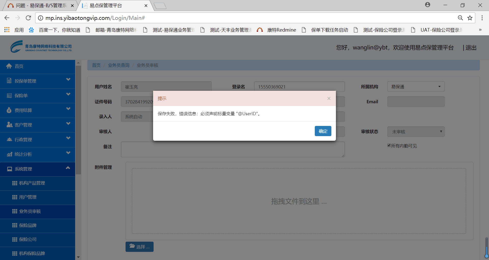 验证范围:1. 业务员为未审核、审核不通过时不能登录系统,验证通过。2.业务员分别审核为普通用户、VIP用户、SVIP用户,可以审核成功并能登录系统测试通过。3.业务员审核不通过时还可再测审核,测试通过