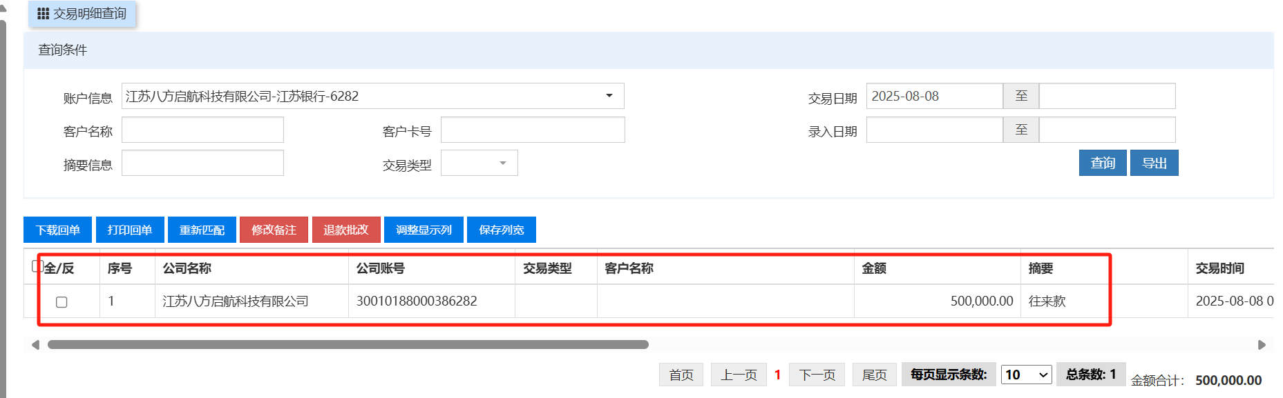 财务发现某账户余额错误,系统余额与日报余额相差一块钱,查询交易明细只有一条,但财务上传了四张回单,应对应四条交易明细,需查找问题