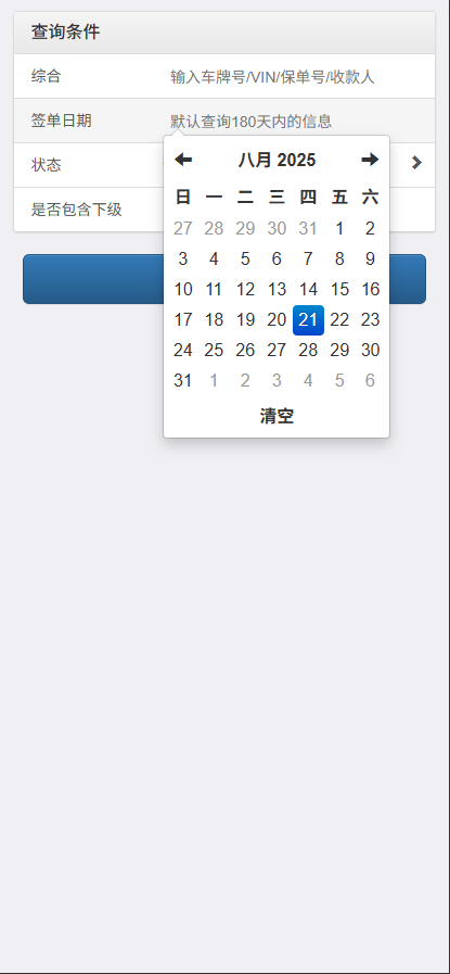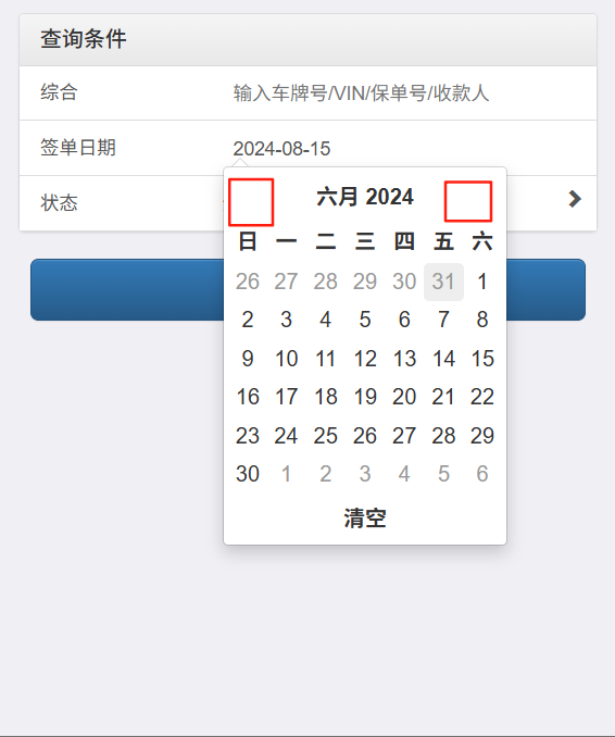 【云鹰保】付款查询选择签单时间前后翻页按钮颜色加深