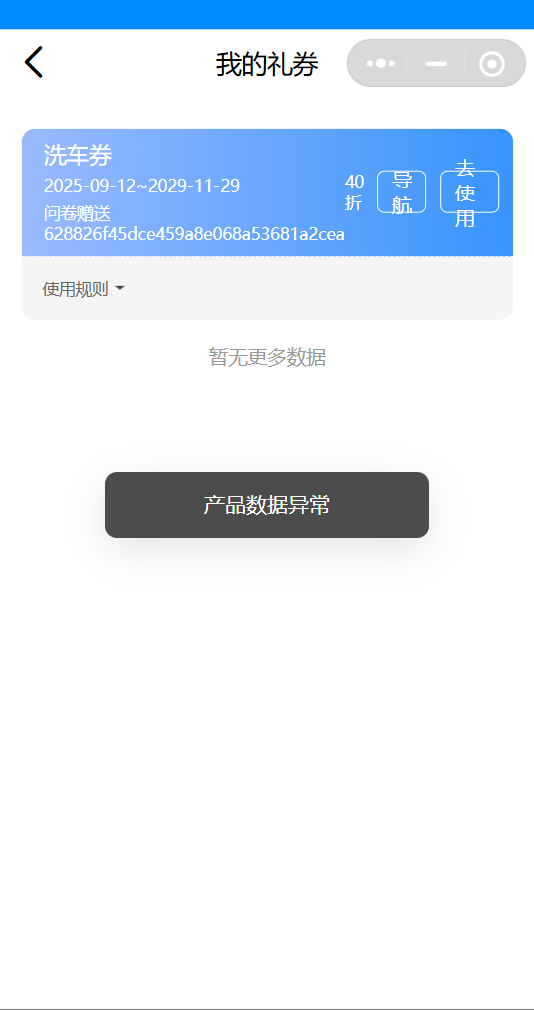 杰高智保小程序,填完问卷以后,在我的礼券里点击去使用,会显示如附件截图一样