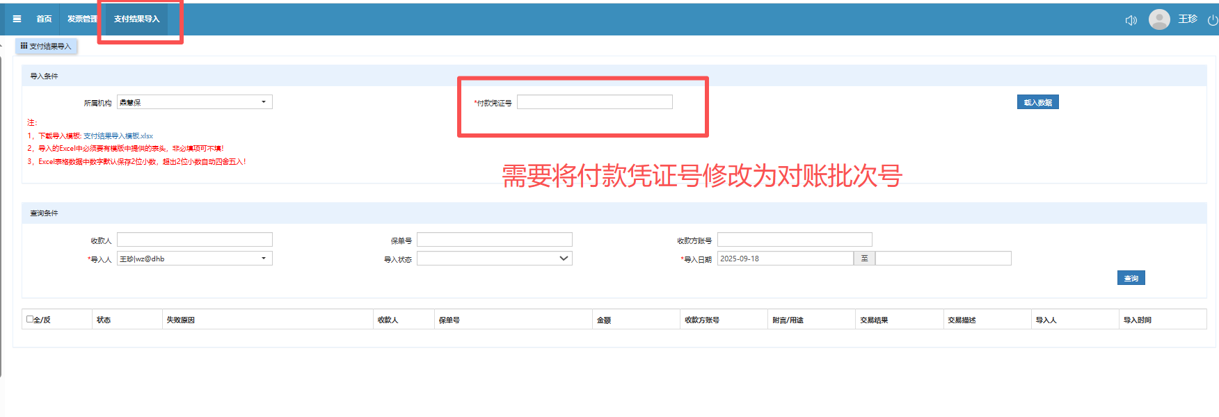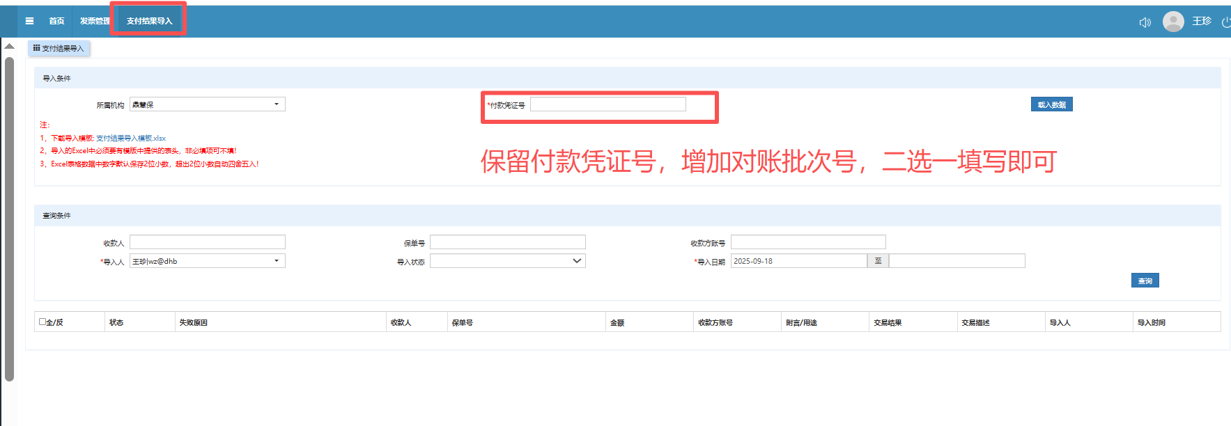 需要更正要求:需要同时保留付款凭证号和对账批次号,导入匹配数据时二选一填写即可。