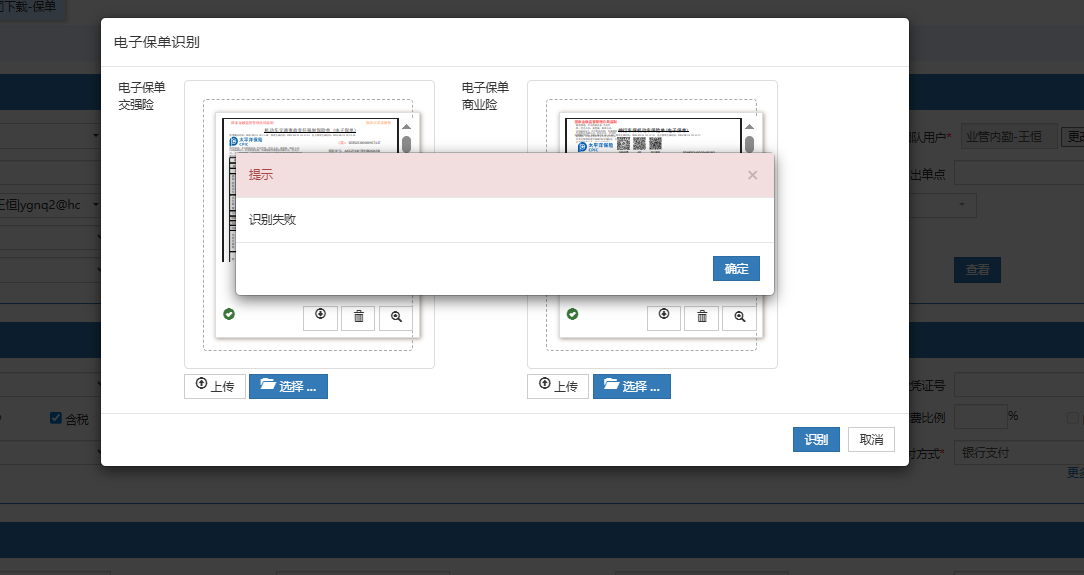 坐席老师使用电子保单识别时显示识别失败,需修改
