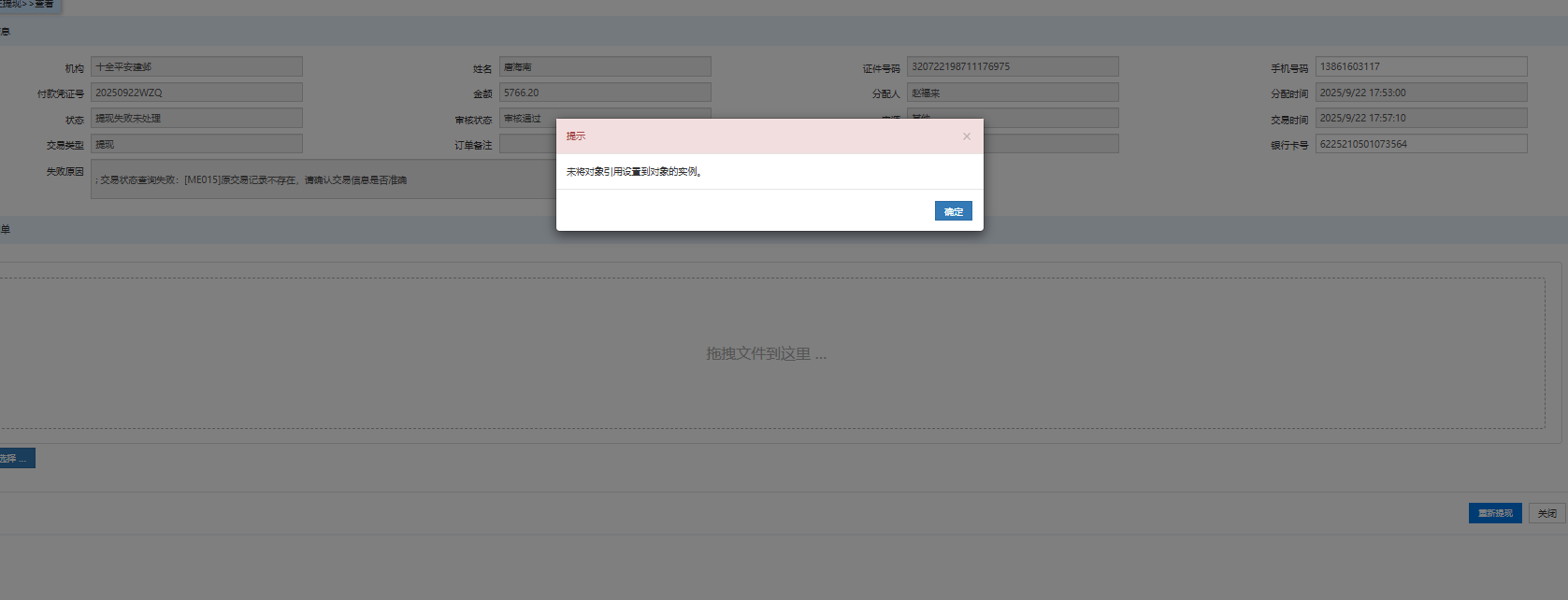 【自主提现管理】支付类型【提现】进行【重新提现】报错(见附件)