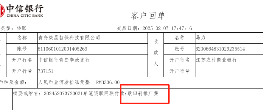 【诺保太保常州】机构的回单备注需去掉推广费