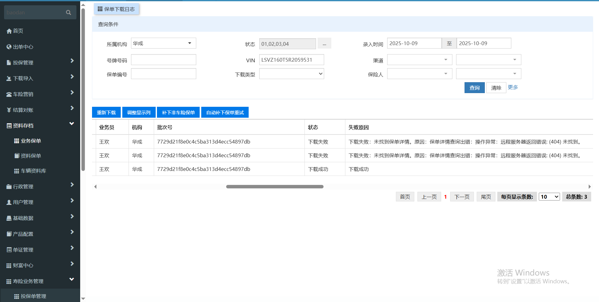 LSVZ160T5R2059531车辆下载失败,失败原因:下载失败:未找到保单详情。原因:保单详情查询出错:操作异常:远程服务器返回错误: (404) 未找到。需进行处理