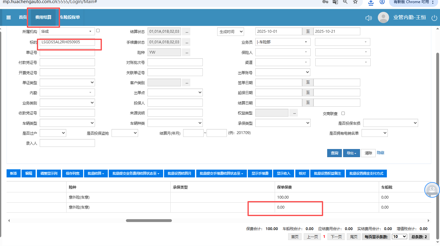 【华成】车意险结算单保费变成0