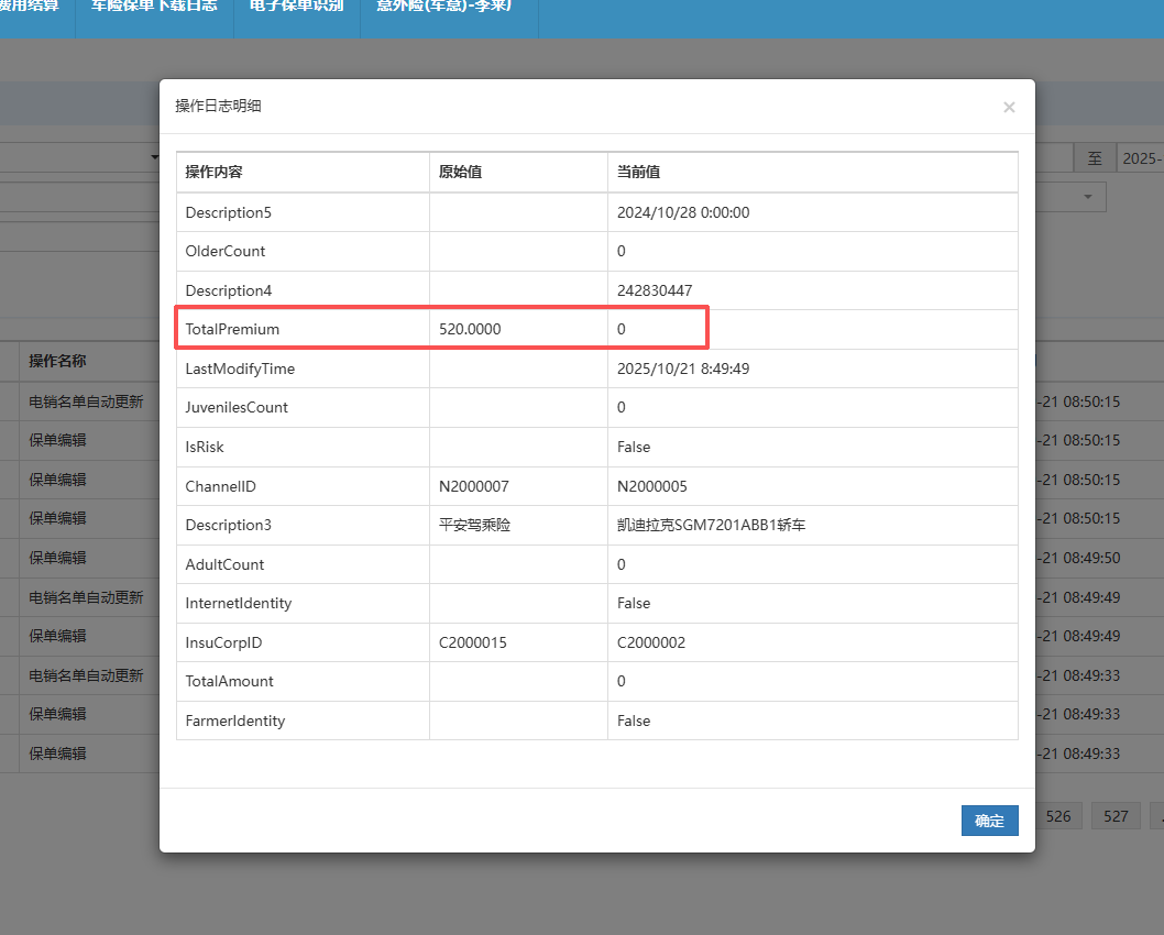 华成老师反应意外险(车意)的单子,在录入时是有保费的,过了两天之后保费就变成0了,需进行处理