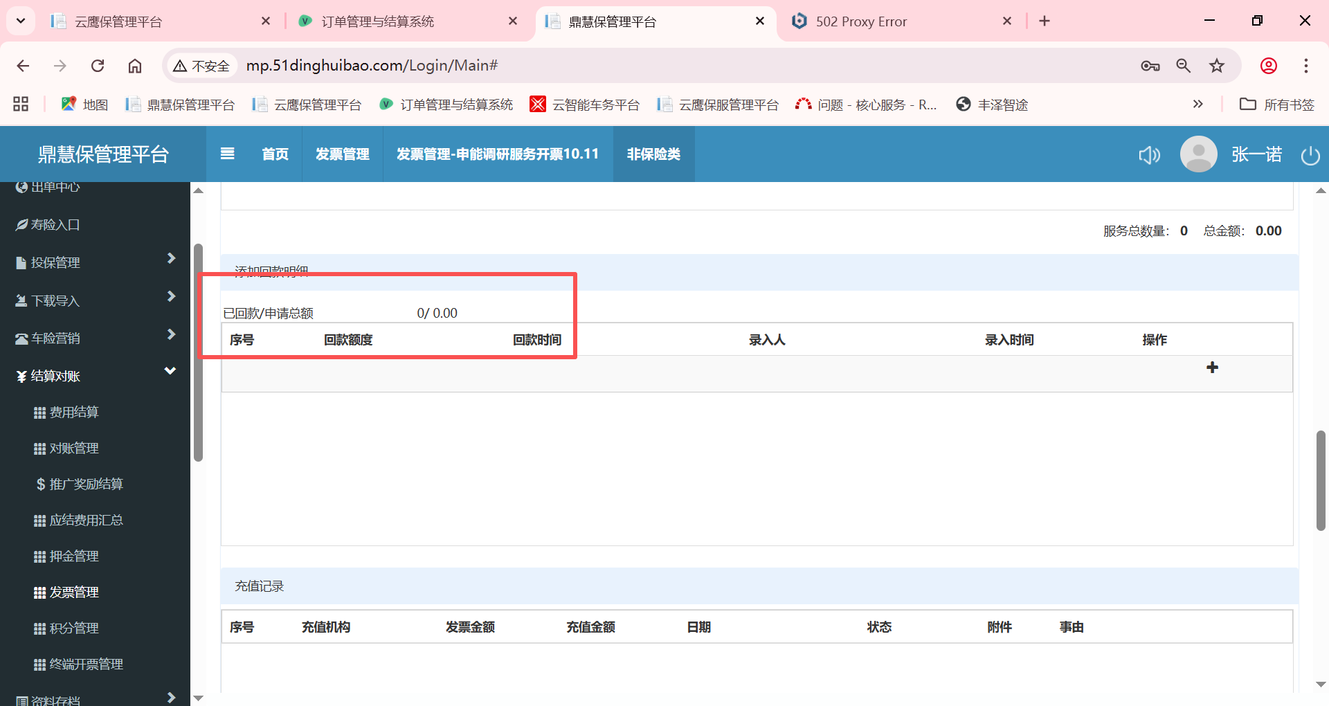 3.点击再次提交后,创建新的申请,回款明细那栏应该是0(见错误3,参照1)