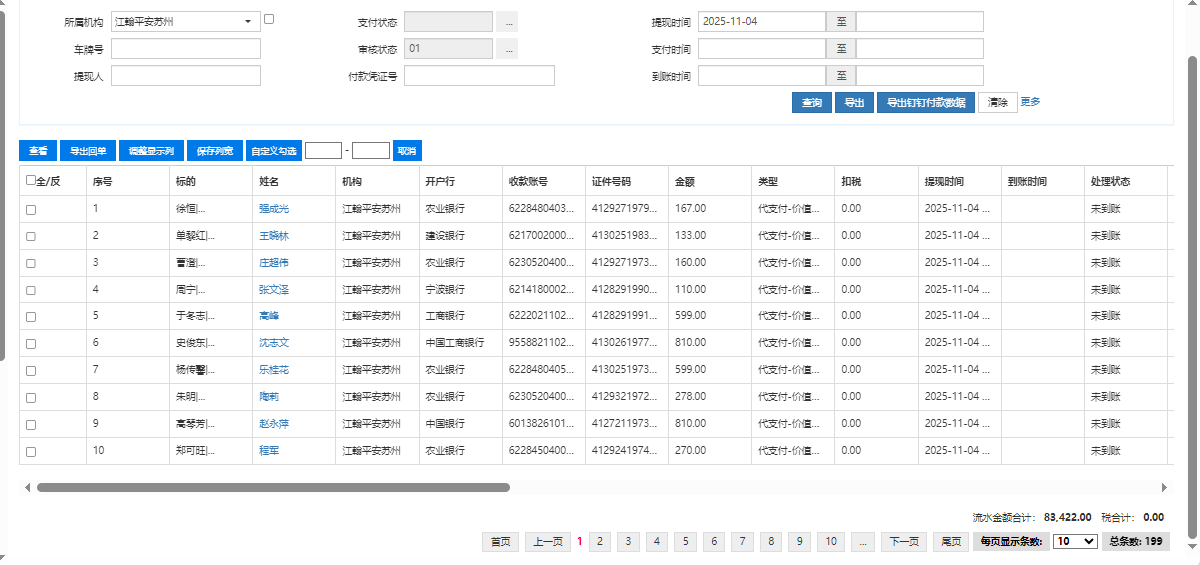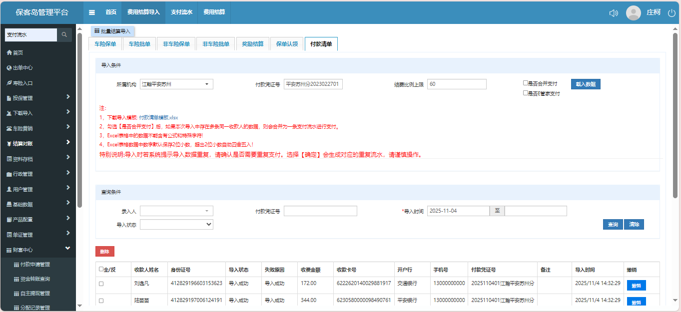 在保客岛系统里用付款清单导入平安苏州表格74634后,费用结算里数据金额都对的上,支付流水里生成出来的流水83422金额不对