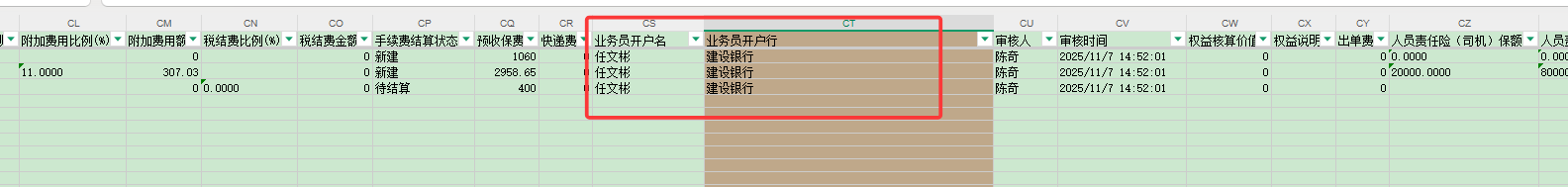 PDZA202532020000746193 PDAA202532020000676881 苏BN58E6本月13号结算时导出结算单时能够查询到业务员开户名、开户行等支信息,但今天再查询时以上信息变为空白,需进行问题查证。
