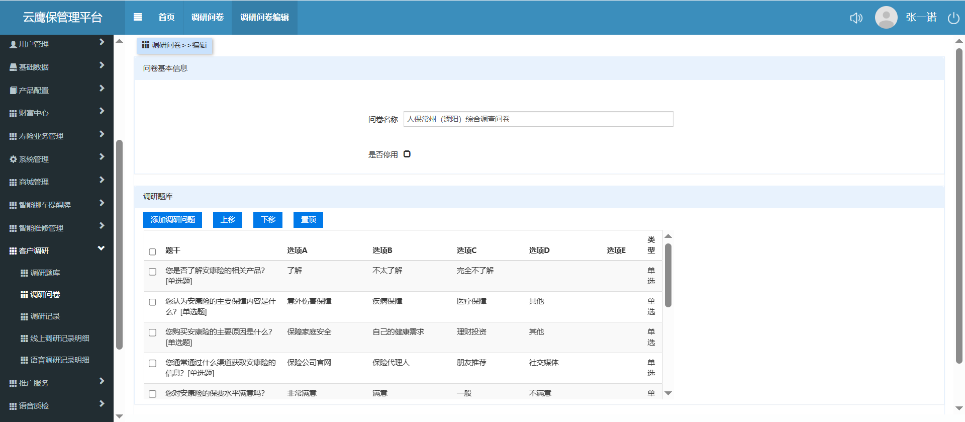 【云鹰保管理平台】客户调研-调研问卷-调研问卷编辑新增问卷导出按钮,导出后问卷自动排版排版整洁形成一个word,每个问题和选项自动换行。