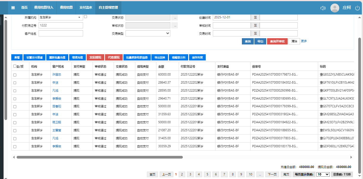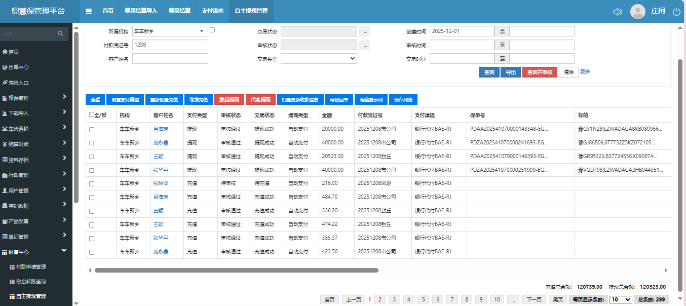 问题:自主体现管理里从12.8支付的大额收款人没有回单,需要上传一下