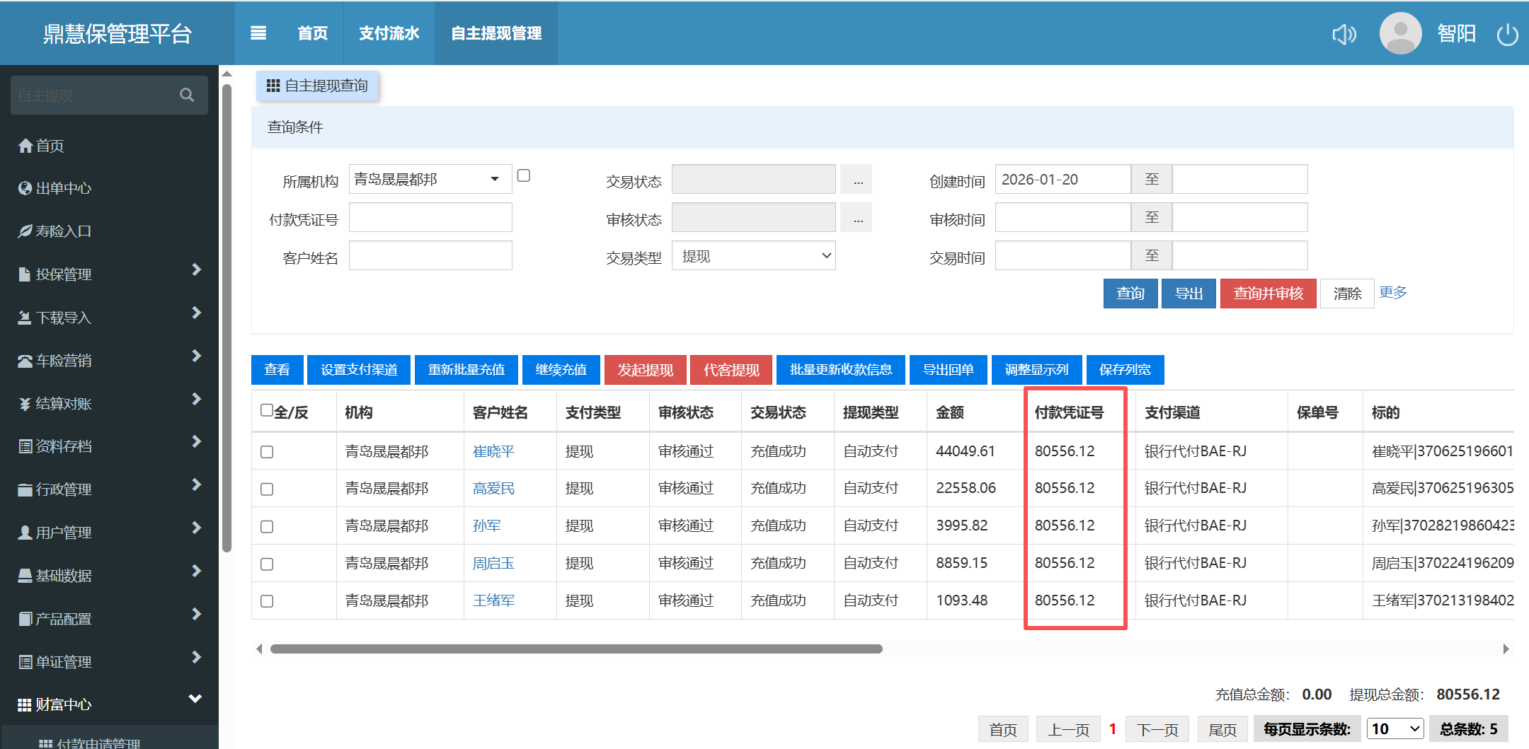 鼎慧宝 机构青岛晟晨都邦 错误的付款凭证 80556.12 订单系统付款凭证号写错了导致自主体现里流水付款付款凭证号也是错的需要修改为 20260120晟晨都邦