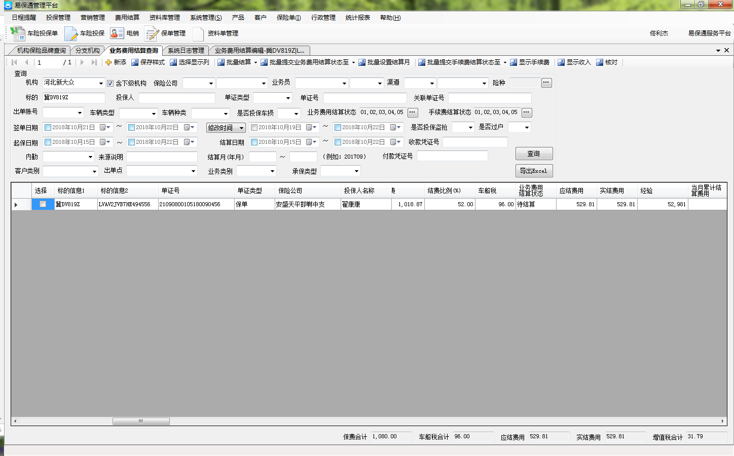 【河北新大众】“冀DV819Z”结算单的应结费用展示不对,在结算单列表页面右下角展示的数不对,在结算单详情页面展示的应结费用是正确的。