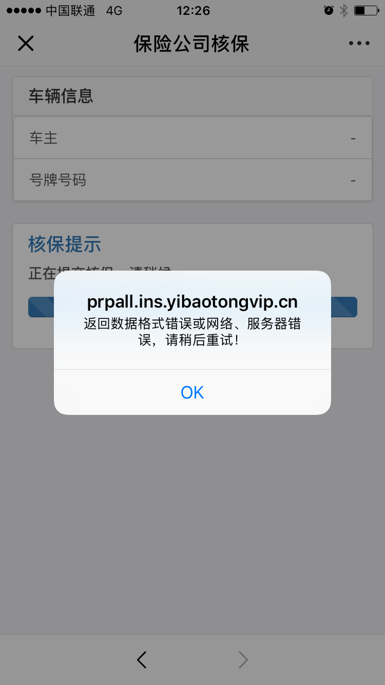 【韩永昌】太保提核时在提核页面系统显示“返回数据格式错误或网络、服务器错误,请稍后重试”