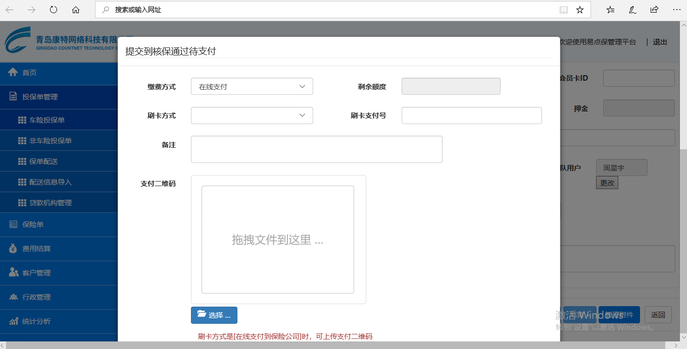 2、投保单提交到“核保通过待支付”时,弹出页面显示不全导致无法操作当前投保单