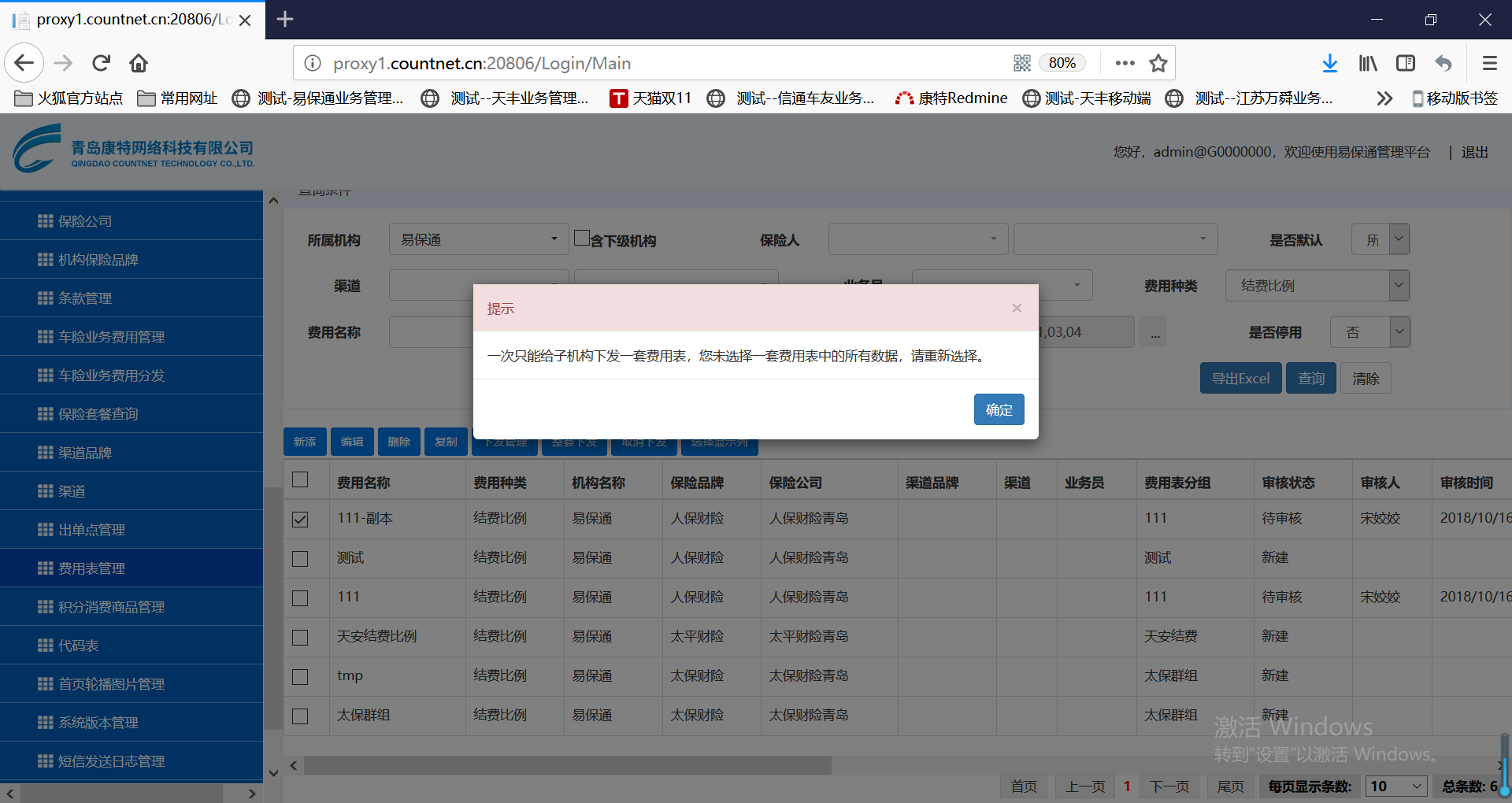 选择未审核通过的费用表,整套下发,提示如附图1。应该判断该表是否审核通过,提示只有审核通过的费用表才可下发。