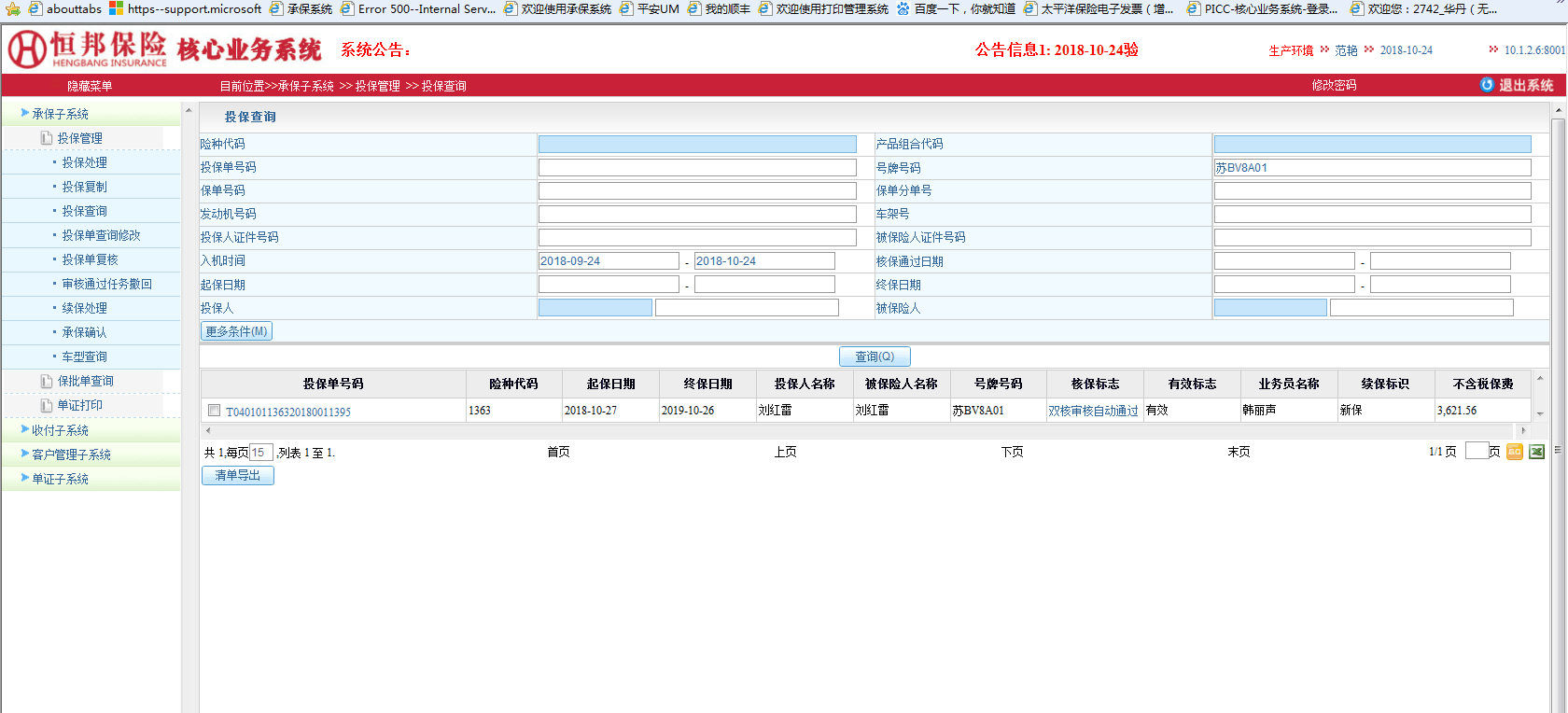 江苏统一朱晓梅反应问题:恒邦在线出单报价成功后提交核保后没有反应,但是恒邦系统内显示核保成功,而且管理系统中的投保单也没有将投保单状态变为核保成功。
