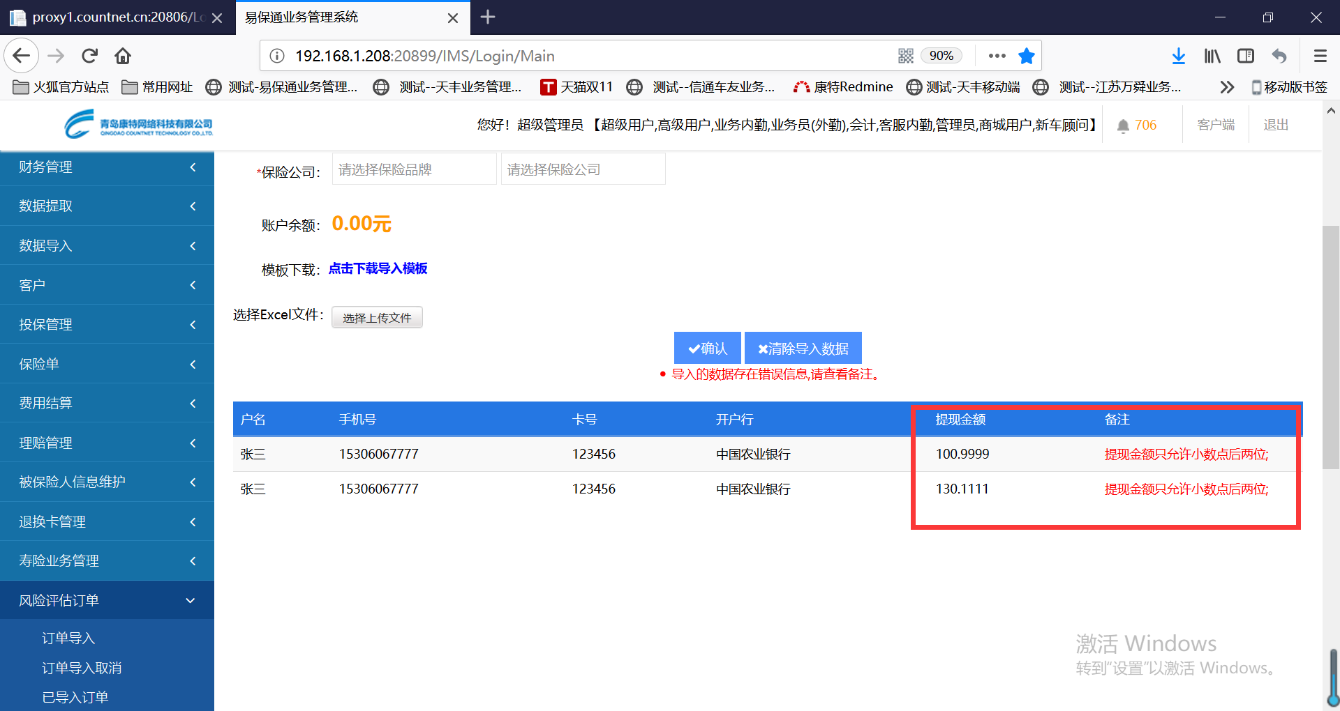 【信通车友】风险评估单,导入的积分超过2位小数需自动去除保留2位小数