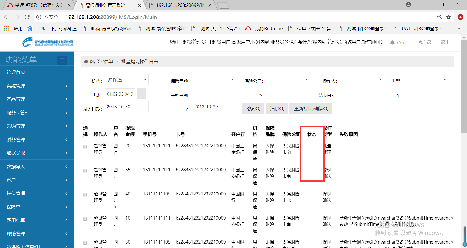 问题原因:在状态表没有与数据中状态标识相对应的状态值解决方案:在批量提现明及确认操作状态表维护上相应的状态