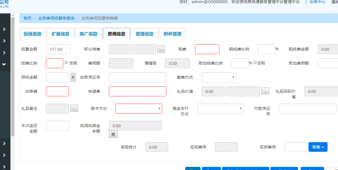错误 #6625: 【高级版】业务费用结算:更改状态时,提示必填信息未填写,填写完成状态提交成功后,查看信息并没保存成功