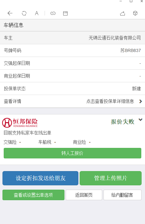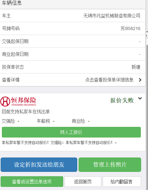 公司车或是不支持自动报价的车,在报价失败的页面需要给出明确的提示告诉客户当前车辆不支持报价。