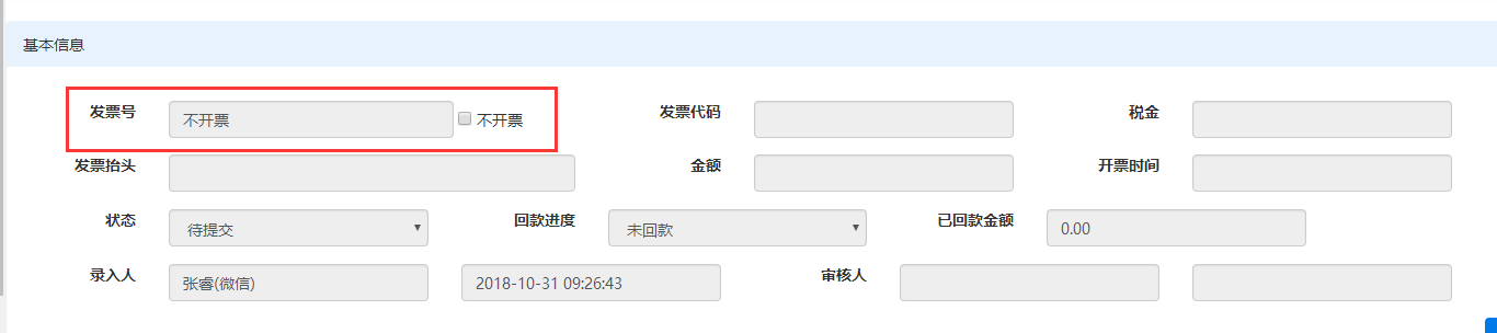 进入不开票的单子的编辑界面,不开票勾选框未显示勾选