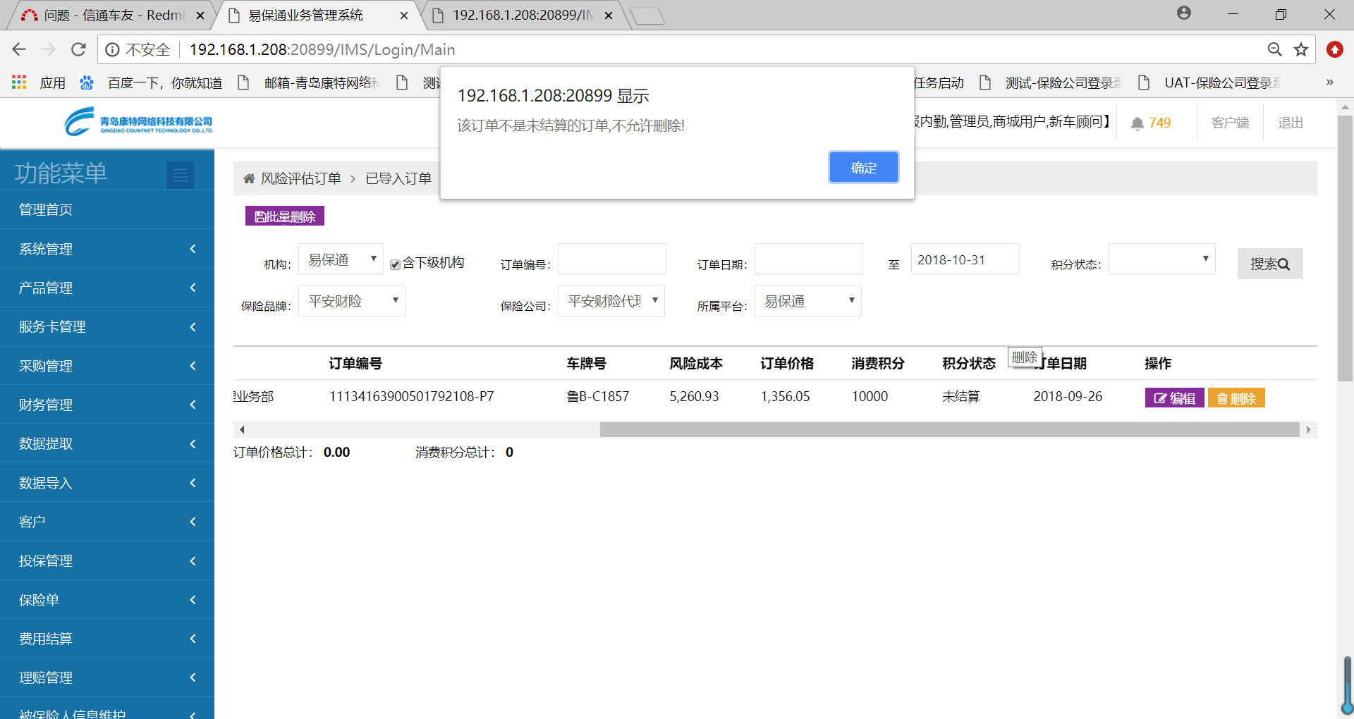 问题原因:设计BUG 解决方案:修改优化对未删除订单状态的判断