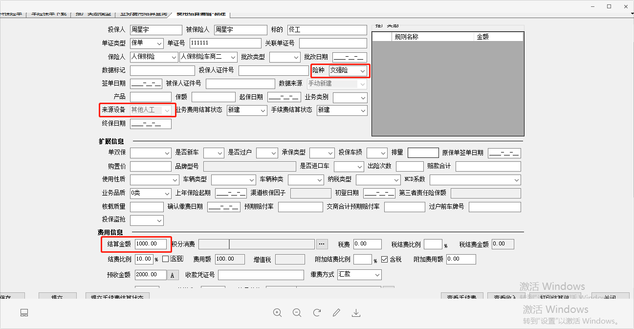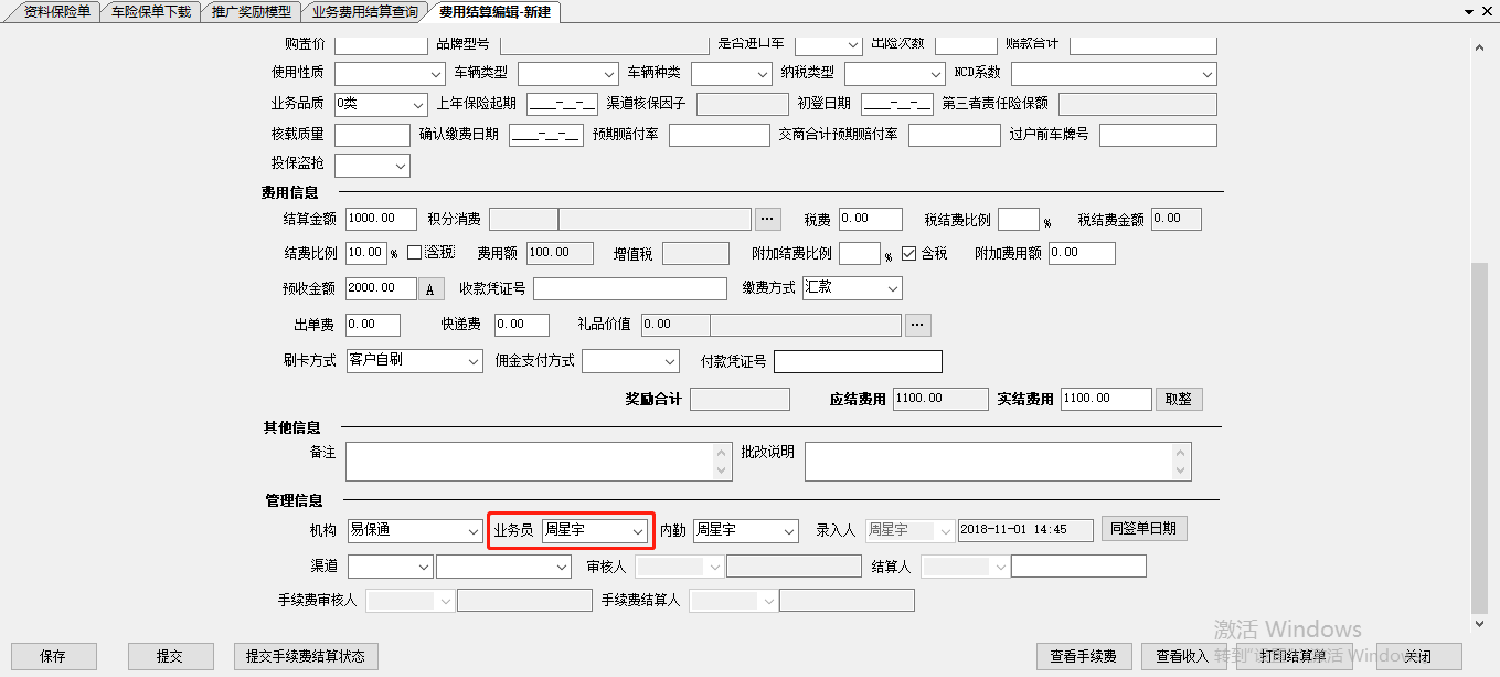 业务员有上级(推荐人),新建的结算单中填上相关信息并选择业务员,保存此结算单。