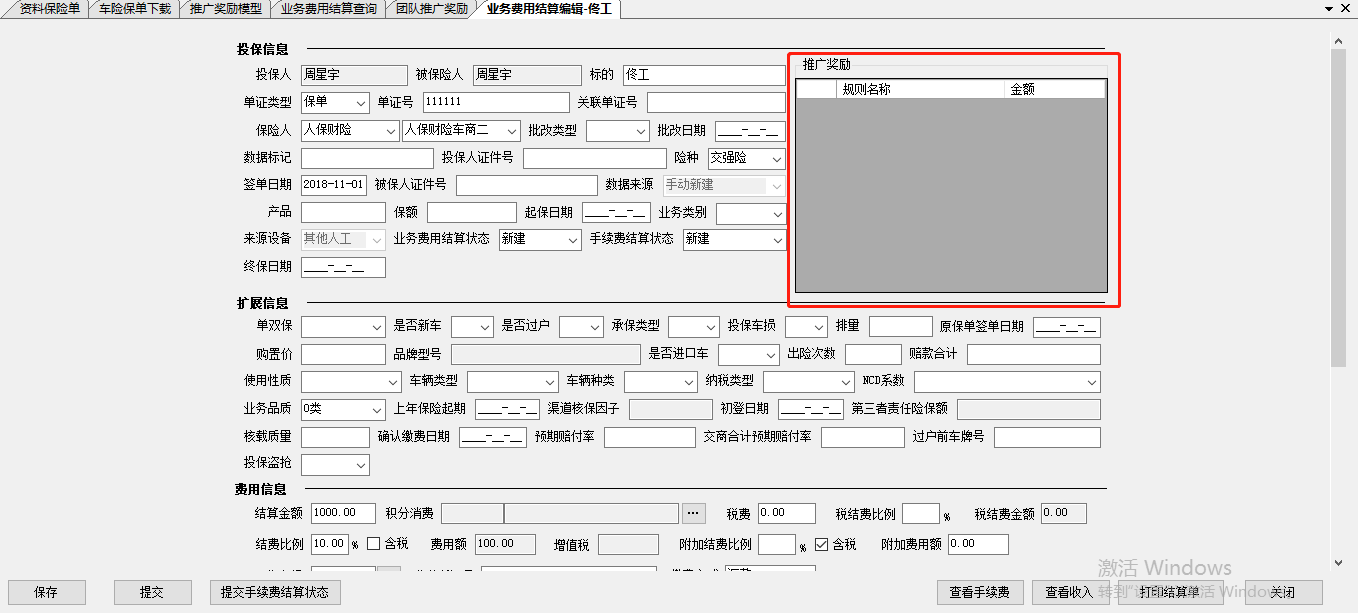 新建一张结算单,当点击保存时,未匹配上推广奖励模板,详情: