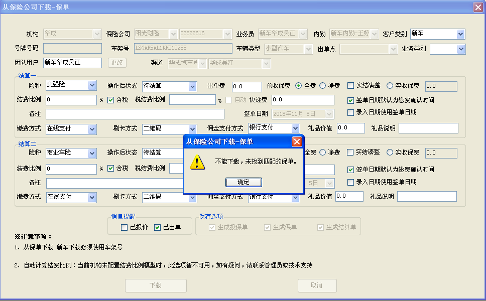 阳光在保险公司系统内已经生成保单,但是管理系统无法下载