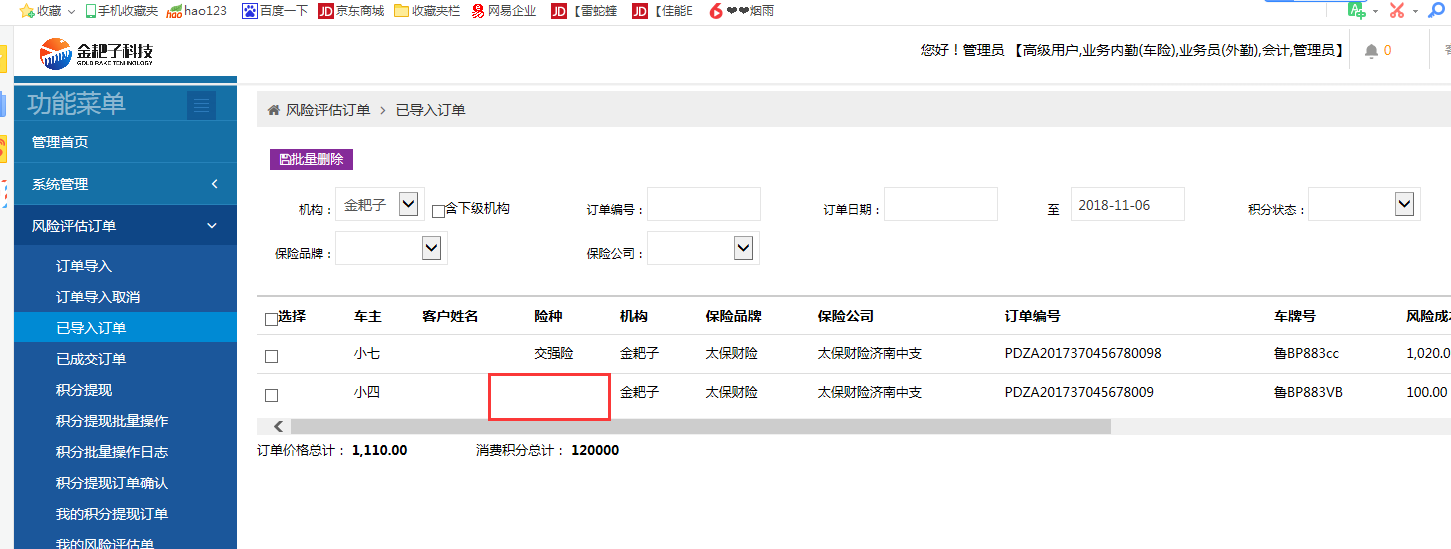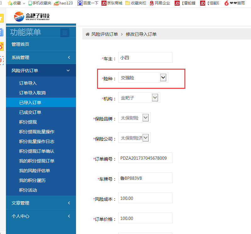 【金耙子】【信通车友】项目通病,在批量导入订单时,没有选择险种,导入成功后,在已导入订单列表页展示“险种”列为空正常,但是到详情页,就变成了交强险。