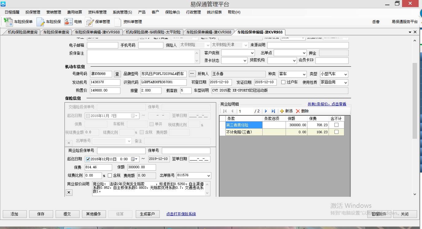 1、使用津KVR988在易保通系统内报价时显示的折扣为0.52,在保险公司系统内报价的时候显示为0.3938,导致报价结果不一致。