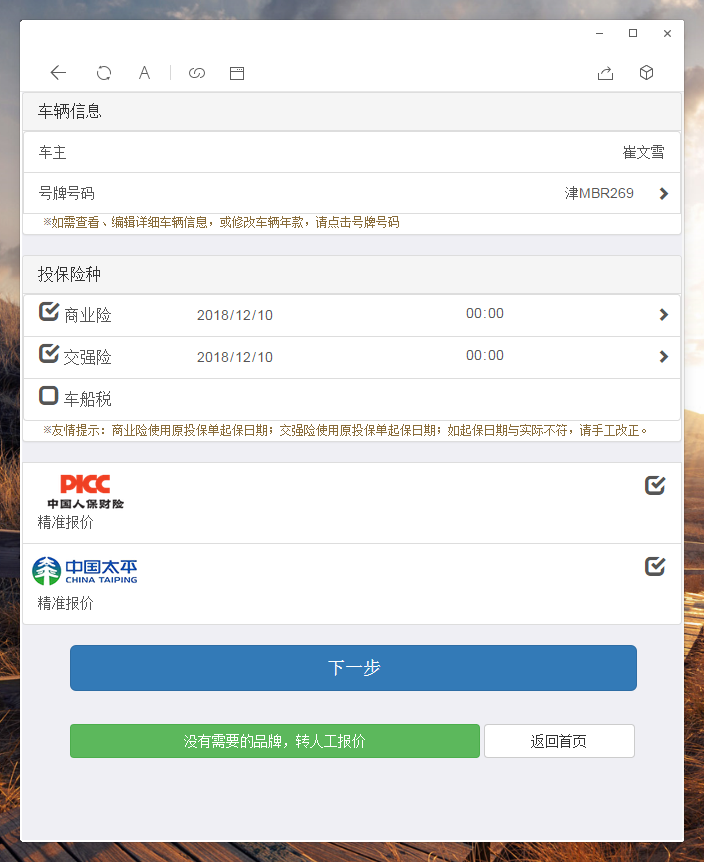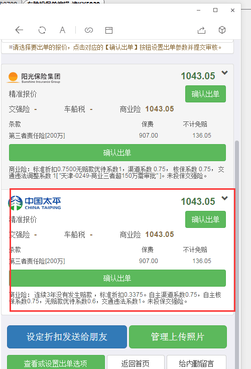 【华明】天津太平报价折扣不对导致报价结果与保险公司系统内的不一致