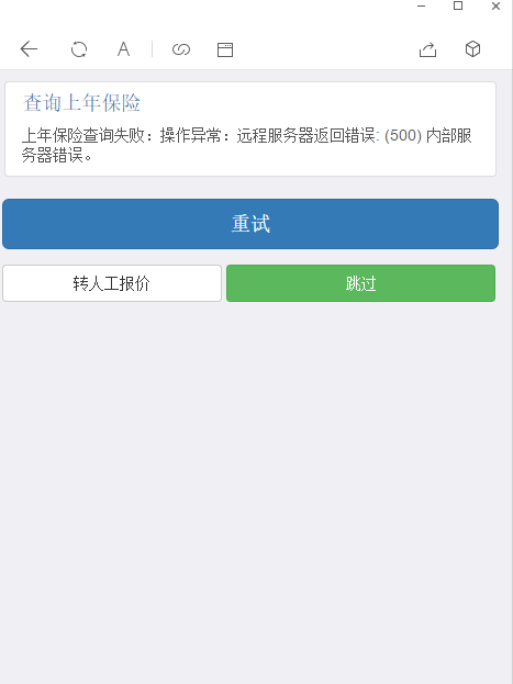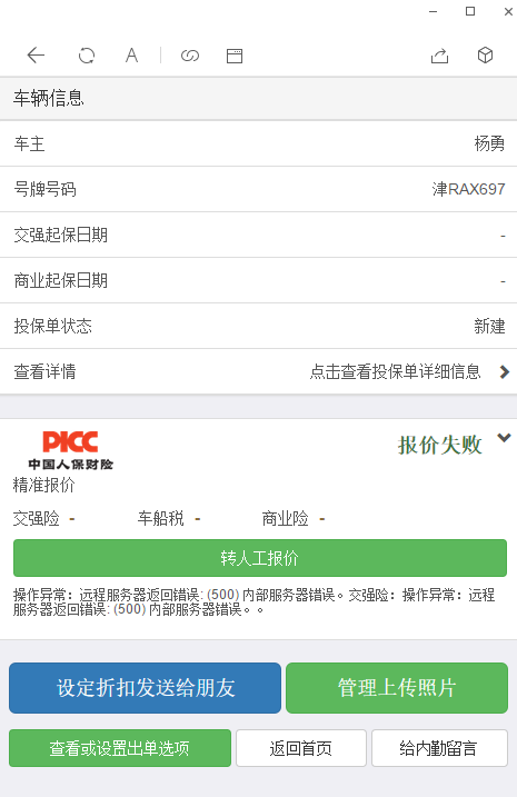 【华明】天津人保所有车报价提示“远程服务器返回错误:(500)内部服务器错误”