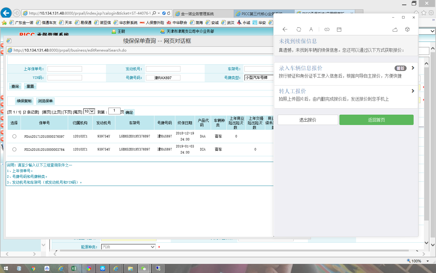 2、上述车津RAX697是人保续保车辆,在排查过程中请确认是否能查询到续保,如不能获取到请一并解决此问题。